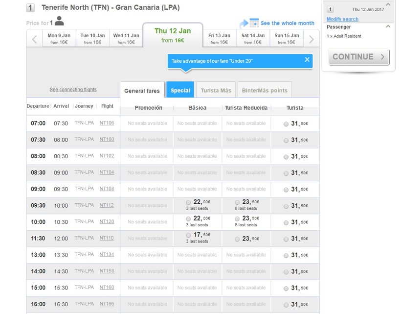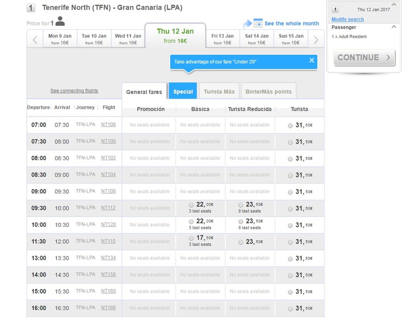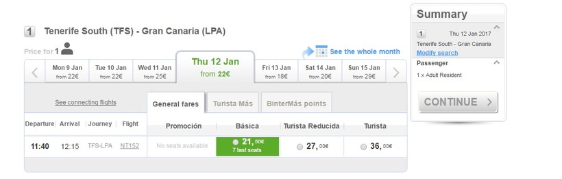 Только представьте, авиакомпания Binter Canarias ежедневно выполняет около 20 рейсов с 7:00 до 21:00 каждые 30-60 минут! Перелет занимает 30 минут. На Канарах всегда тепло, но все равно есть месяцы, когда туристов больше или меньше, тогда могут появляться дополнительные рейсы авиакомпаний Airberlin, AirEuropa, Niki и другие.