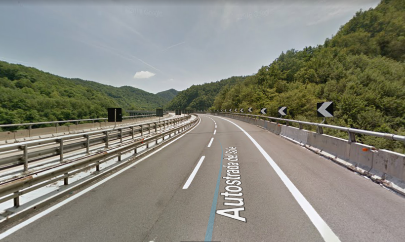Маршрут проходит через Падую, Болонью, Апеннинские горы. Акцентирую внимание, что дорога проходит через горы, хоть Апеннины имеют высоту и 2000 м, но на этом маршруте горы не высокие, по крайней мере такое у меня осталось впечатление. Дело в том, что дорога идеально ровная, горы она не обходит, а проходит через них. Несмотря на то, что автобаны имеют отбойники, которые портят вид из окна автомобиля, дорога из Болоньи во Флоренцию красивая, проходит среди лесистых гор и по многочисленным туннелям.