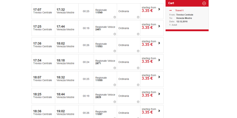Нужно понимать, что поездка это не быстрая и на неё лучше отвести весь день. В целом передвигаться поездами довольно комфортно и если бы не пересадки, то можно было бы даже не рассматривать другие варианты. Поскольку пересадок в пути предстоит много, я советую заранее побольше узнать про итальянские железные дороги. Посмотрите в поисковиках, почитайте отзывы, вот здесь например можно глянуть.