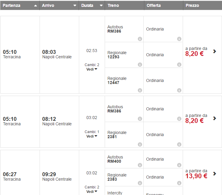 Проезд до Неаполя обойдется от 8,20 евро. Еще около 5 евро будет стоить проезд до Сорренто.