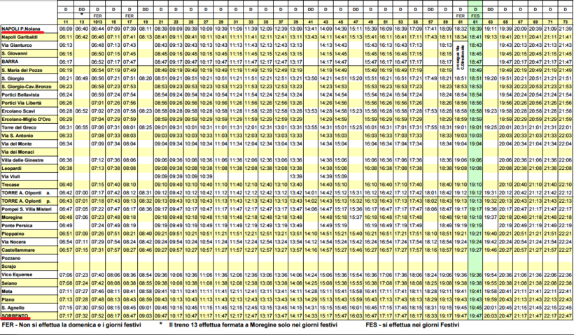 Из Неаполя в Сорренто можно добраться на особом поезде Circumvesuviana. Вход на эту железнодорожную линию находится прямо в здании главного вокзала Неаполя, точнее – под ним. Обратите внимание, здесь же расположен и выход к метро, поэтому либо следите за указателями, либо спрашивайте местных. . Поездов, следующих в Сорренто, очень много. Они отправляются отсюда примерно каждые 10-15 минут в течение всего дня до половины десятого вечера. В пути нужно будет провести около часа. Кстати, вы можете не переживать, что проедите свою станцию: Сорренто – конечная остановка.