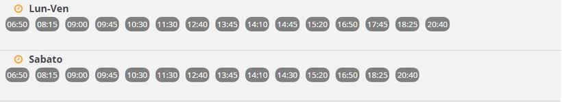 Автобусы ходят ежедневно начиная с 7 утра и до 9 вечера, за исключением воскресенья и праздничных дней. Отправление автобусов из Террачины производится от двух платформ: от Staz.FS и Via Roma. Расписание для обеих платформ практически одинаковое, но имеет некоторые отличия: