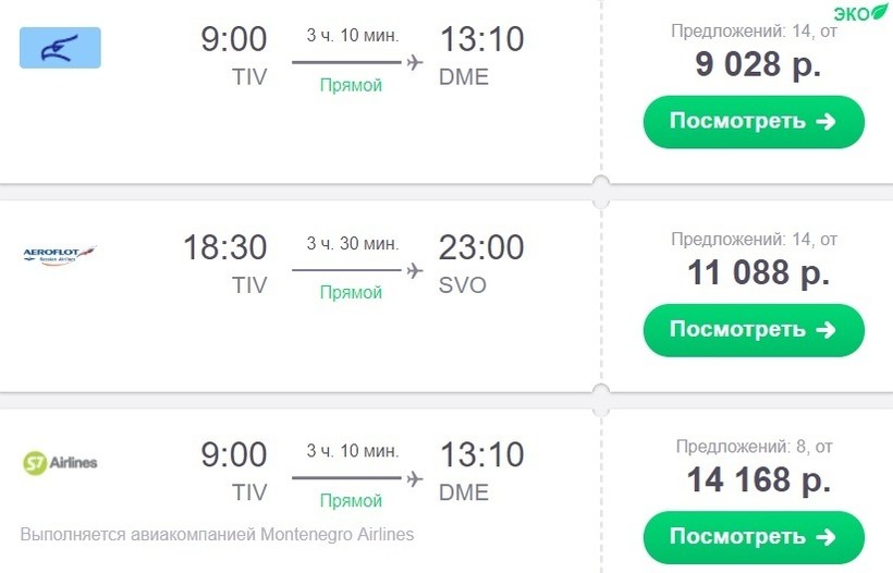 Авиабилеты Тиват – Москва