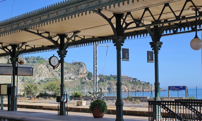 В Таормине находится прямо у моря в некотором отдалении от туристической части города. Дойти к нему несложно – это займет минут 20-25, а вот поездка на такси обойдется в почти 15 евро. Обратите внимание, что на вокзале нет камер хранения. Кстати, железнодорожная очень красива внутри, поэтому советую прогуляться сюда даже если вы не планируете никуда ехать.
