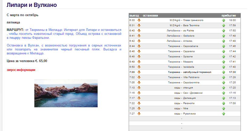 Также можно поехать в Милаццо и на экскурсионном автобусе. Выезд экскурсионной группы в 07:00, но такая поездка обойдется в 65 евро.