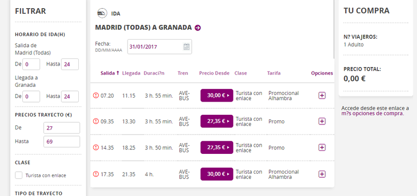 Купить билеты для поездки в транспорте по такому маршруту можно на сайте Renfe. Если нет доступа к интернет сети, то можно обратиться в кассу ж/д станций