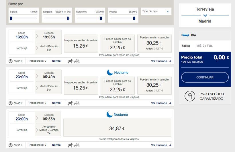 Кроме того, есть еще один автобус, отправляющийся в 13.00, который в Мадриде уже в 19.05.