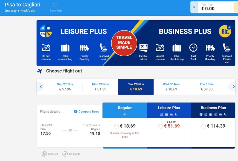 Билеты в Сардинию можно купить даже за 15 евро, но с собой можно взять только ручную кладь. Цены сильно зависят от сезона и дня недели, так билеты с возможностью провезти багаж стоят от 50 до 160 евро.