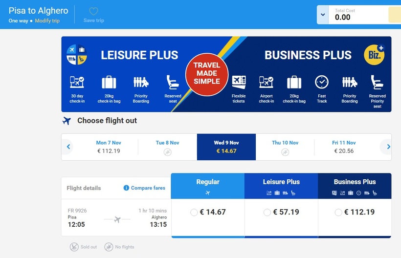 Выполняет рейсы из аэропорта «Галилео Галилей» (Pisa Galileo Galilei Airport) на Сардинию авиакомпания Ryanair.