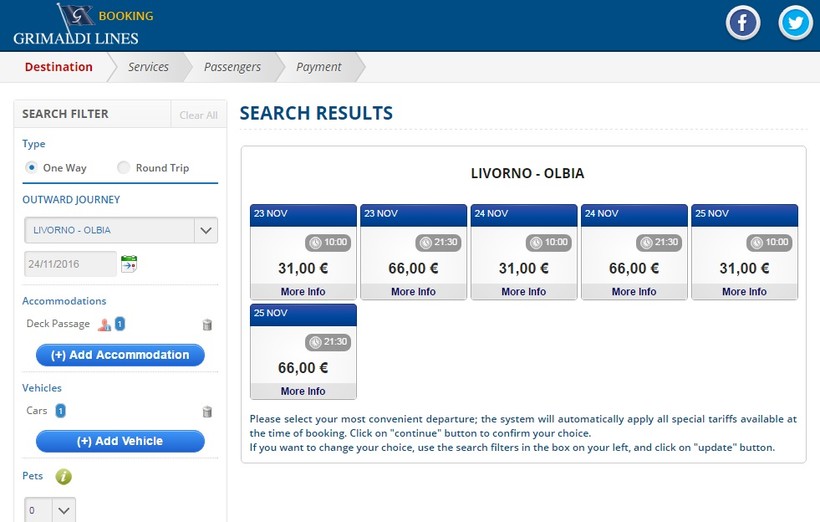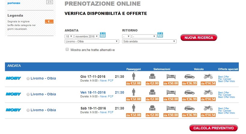 У компании Moby есть только один ночной рейс, паром отправляется в 21:30 и прибывает в Ольбию в 6:30.