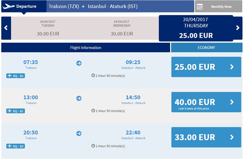 Покупать лучше всего онлайн, ведь только так можно найти акционные предложения по низким ценам. Для этого можно воспользоваться официальными сайтами авиаоператоров, что обслуживают маршрут, - Turkish Airlines, Onur Air, Pegasus Airlines или поисковиком наподобие такого.