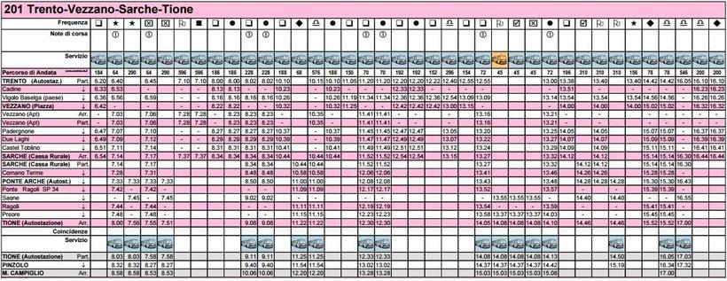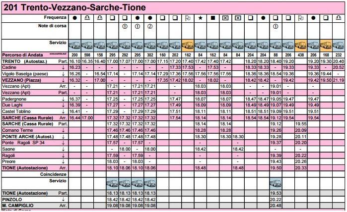 Эти два города связывает автобусное сообщение. Ежедневно от автостанции Тренто на Via Pozzo Andrea отправляется 12 рейсов компании Trentino Trasporti Esercizio, начиная с 06:40 и заканчивая 18:40. Автобус 201 едет эти 70 км довольно долго (примерно 2 ч 10 мин). Это из-за большого количества остановок по пути. Только в Мадонне Ди Кампильо я насчитала 6 штук, так что есть возможность выйти в удобном для вас месте. Интервал между отправлениями автобусов – от 5 мин до 2,5 часов.