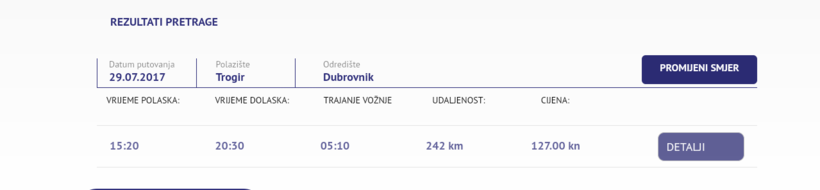 Это рейс компании AP Varazdin и ездит он раз в день, в 15:20, поездка занимает 5 часов.