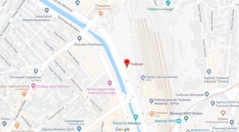 Место отправления автобусов — автобусная станция Тулузы. Вот скриншот карты.