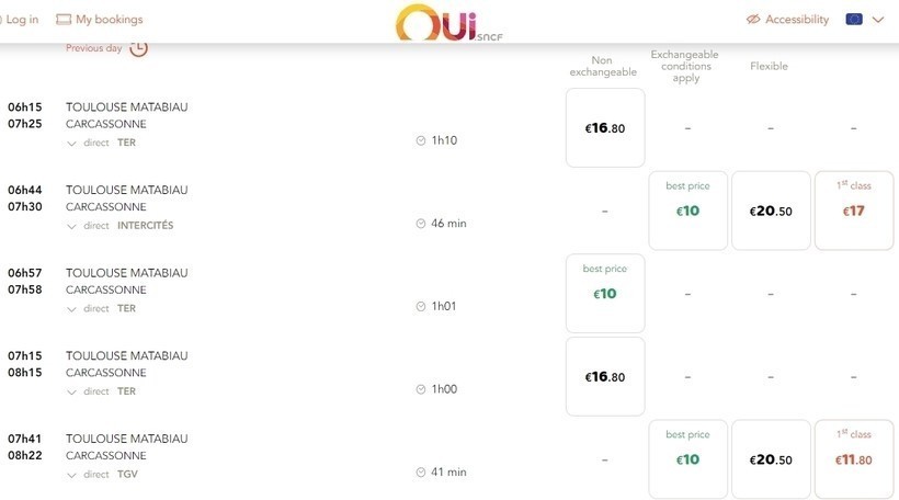 - на сайте компании SNCF (как по мне, это лучший вариант);