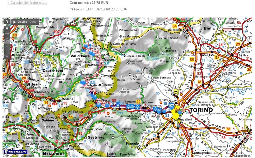 Понятное дело, что мне эта поездка ничего не стоила, ведь за остановленную по пути машину платить не пришлось. А вот водитель рассказал мне, что от Валь-д’Изера до Тиня около 13 км, поэтому к его затратам нужно будет прибавить всего лишь пару евро. На топливо от Турина до Тиня придется потратить около 30 евро, плюс стоимость платной магистрали. Так же нужно заплатить за проезд через перевал, на неделю что-то около 45 евро. Во втором варианте, по трассе А-43 получится немного больше затрат на топливо, примерно 40 евро.