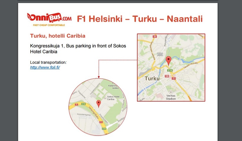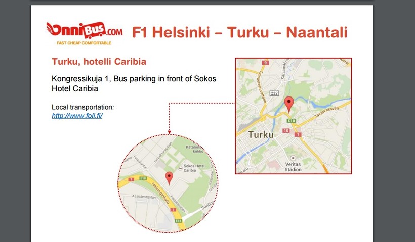 Автобусы едут из Хельсики в Наантали через Турку. Ниже вы видите расположение автобусной остановки в Турку возле Sokos Hotel Caribia.