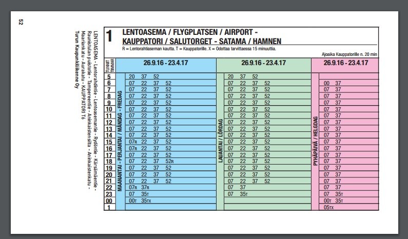 Прямого автобусного сообщения между аэропортом Турку и Наантали нет. Придется ехать через Турку. От аэровокзала в город курсируют автобусы линии №1 перевозчика Foli. Вот расписание.