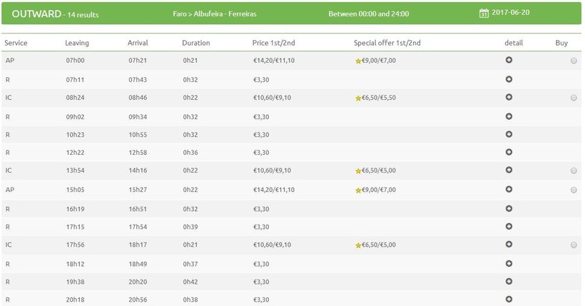 Составы начинают ходить в 07:00, а заканчивают – в 20:18, ночью уехать ничем не получится. Все бы хорошо, но от железнодорожной станции Албуфейры (Albufeira-Ferreiras) до города – 6 км.