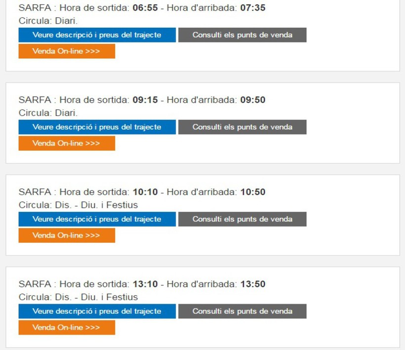 Фрагмент расписания автобусов из Жироны до Ла-Пера