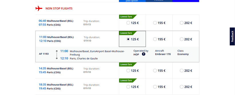 Ближайший к Фрайбургу аэропорт находится в Базеле. Про сам аэропорт хорошо рассказано здесь, а как добраться из Фрайбурга в Базель можно почитать вот тут. Рейсы по данному направлению обеспечивает компания Air France. С расписанием можно ознакомиться на сайте компании или на скриншоте внизу: