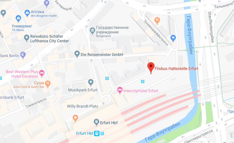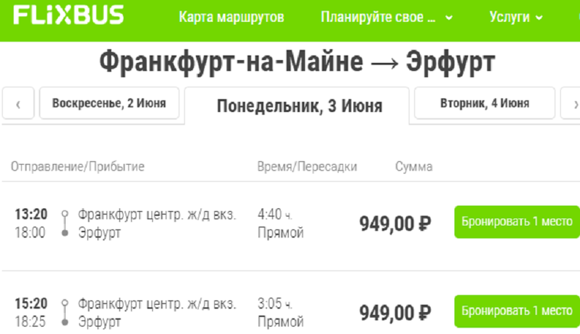 Планируя поездку из Франкфурта-на-Майне в Эрфурт на автобусе, сразу отправляйтесь на сайт Flixbus, ведь эта компания, известная во всей Европе, является монополистом автобусных перевозок в Германии .