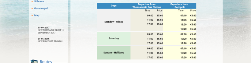 Стоимость проезда будет зависеть от вашего места расположения, мне проезд обошелся в 5,6 евро до Салоников и еще 1 евро я заплатила за проезд на городском маршруте.
