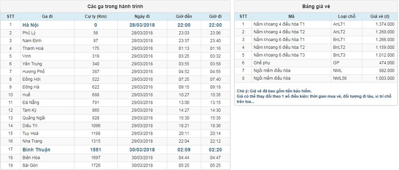 Билеты разные: есть самые дешевые за 470 тыс. донг (17 евро), только предполагают проезд на деревянной лавочке. Проезд в вагоне с креслами и кондиционером куда дороже — 1 млн донг (36 евро). Места в купе стоят 1,1-1,3 млн донг (40 евро).