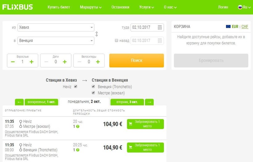 Автобусы Flixbus веселого зеленого цвета выезжают из Хевиза один раз в сутки. В основном, выезд в 11:35, но по некоторым дням – в 12:35. Совершить нужно всего одну пересадку. Но когда я дочиталась, что она будет в Мюнхене, мне стало обидно делать такой крюк, да еще и просто побыть в Мюнхене на вокзале и не увидеть города! Вся дорога с пересадкой будет 19-20 часов. Отправление – от автостанции Хевиза.