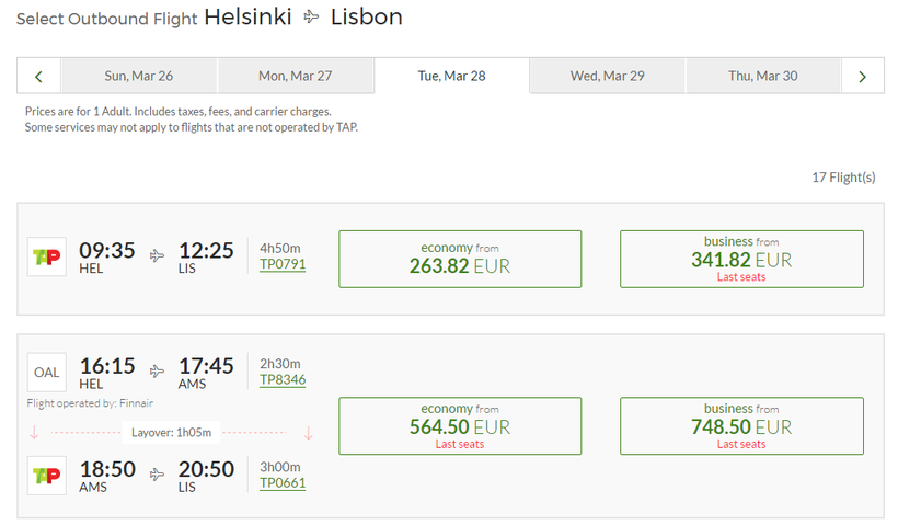 Прямой перелет из Хельсинки в Лиссабон - "удовольствие" не из дешевых. Купить билеты можно за 263 евро и дороже.