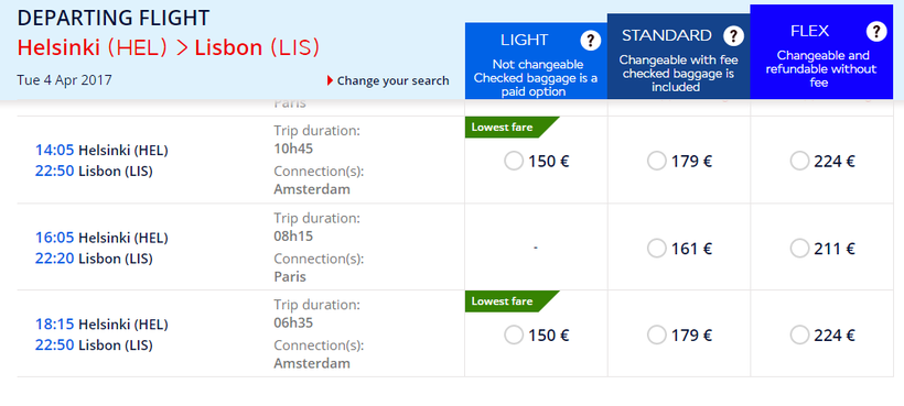 За 150 евро и дороже можно найти перелет с пересадкой в Амстердаме от AirFrance.