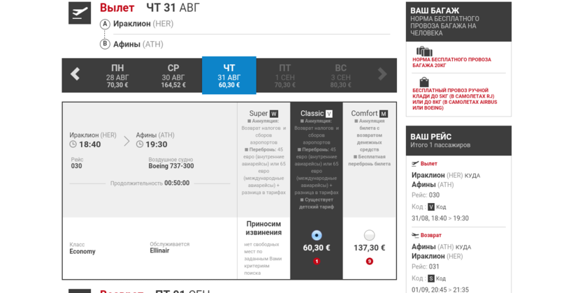 Билеты на автобус продаются у кондуктора, а на самолет — на сайтах Ellinair и Aegeanair. Еще в интернете встречается много таких сервисов, которые позволяют выбирать выгодные билеты сразу среди всех предложений.