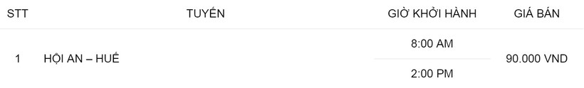 Автобусы отправляются и прибывают к офисам агентств, так, представительство TheSinh Tourist в Хойане находится по адресу 587 Hai Ba Trung, а Hanhcafe — на 02 Thái Phiên. В Хюэ TheSinh Tourist расположен на 37 Nguyen Thai Hoc, а Hanhcafe — на 28 Chu Văn An.