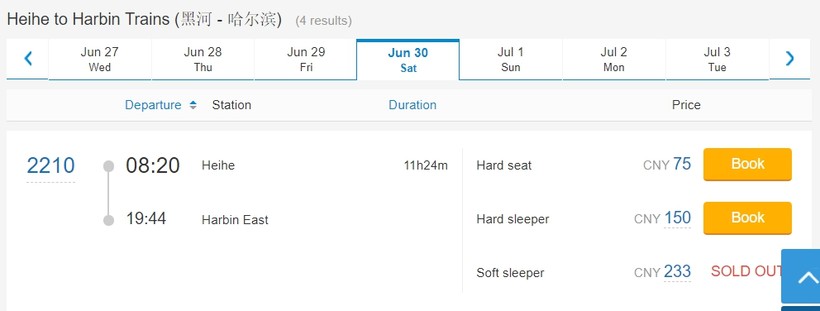 За десять с половиной часов из Хэйхэ можно добраться в Харбин на поезде.