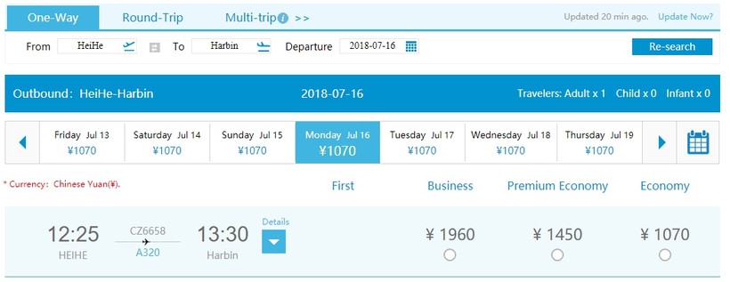 Перелет из Хэйхэ в Харбин займет всего час и десять минут.