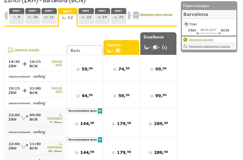 Цюрих - Барселона