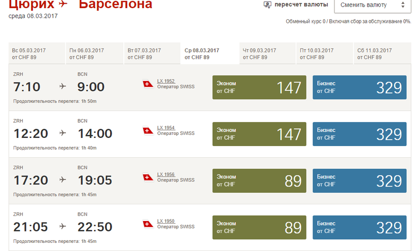 Авиабилеты Цюрих – Барселона