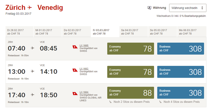 Авиабилеты Цюрих – Венеция