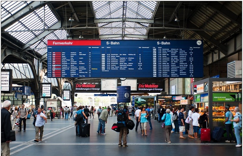 Отправление поездов происходит с главного железнодорожного вокзала Цюриха.