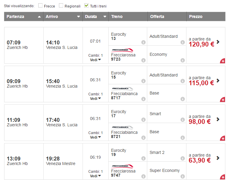 Купить билеты на поезд по направлению Цюрих - Милан - Венеция можно несколькими способами: