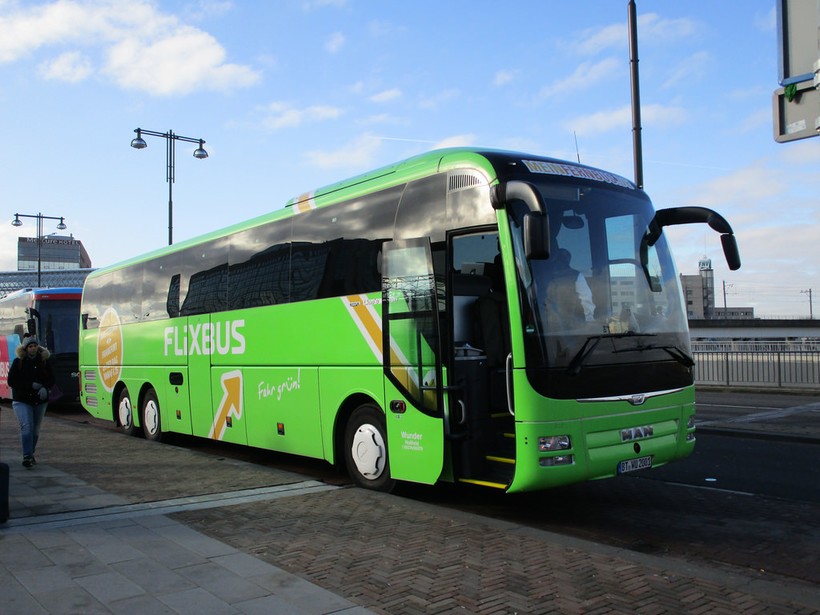 Это автобус фирмы FlixBus,и он отправляется от этого вокзала лишь раз в сутки: