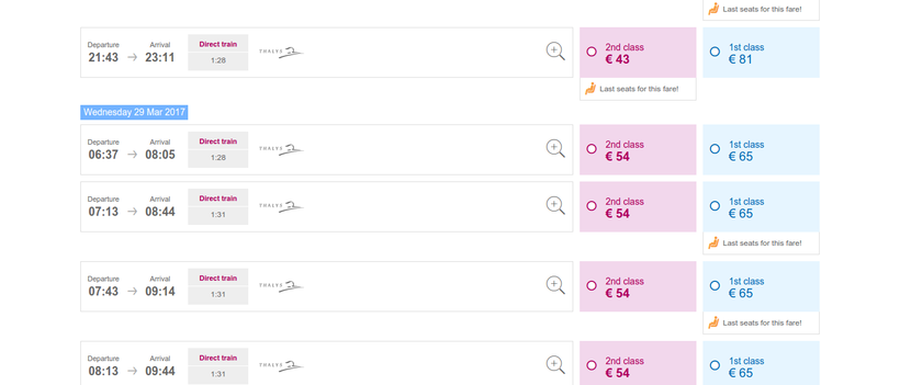 Итак, с вокзала Midi поезда отправляются до Парижа без пересадок. Ходят по данному направлению поезда класса Thalys. Это очень комфортабельные составы: