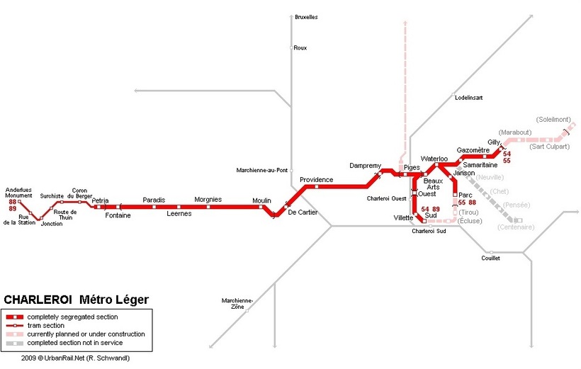 В Шарлеруа два железнодорожных вокзала. Поезда в Антверпен отправляются со станции Charleroi Sud.Добирались до этой станции мы с мужем на местном метро, которое мне больше напоминает скоростной трамвай.