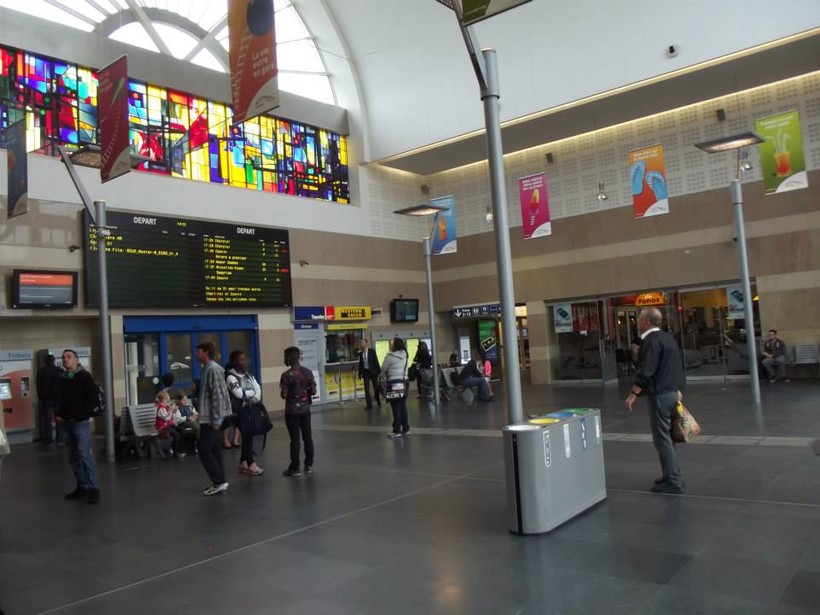 На станцию мы с мужем прибыли за час до отправления поезда. Вообще, смысла приезжать заранее на железнодорожные вокзалы в Бельгии нет. Поезда в этой стране подаются на платформу за 5-10 минут до отправления. Погода была хорошая, поэтому сидеть в душном здании вокзала не хотелось. Решили прогуляться по парку у привокзальной площади и выпить кофейка с какой-то плюшкой на свежем воздухе. Нагулявшись, мы пошли на вокзал. Вот так выглядит здание внутри.