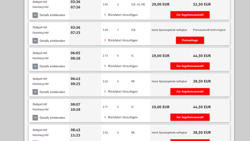 Зайдя на сайт Дойче бан, я увидела, что добраться в Нюрнберг можно без пересадок. Правда, прямых рейсов много, а в пути вы проведете меньше времени, да и билет будет стоить дешевле. В общем, прямые поезда отправляются из Штутгарта в примерно раз в час с 6 утра до 8 вечера. В дороге нужно будет провести приблизительно 2,5 часа. Как видите, прямых маршрутов полно, и проблем с дорогой не должно возникнуть.
