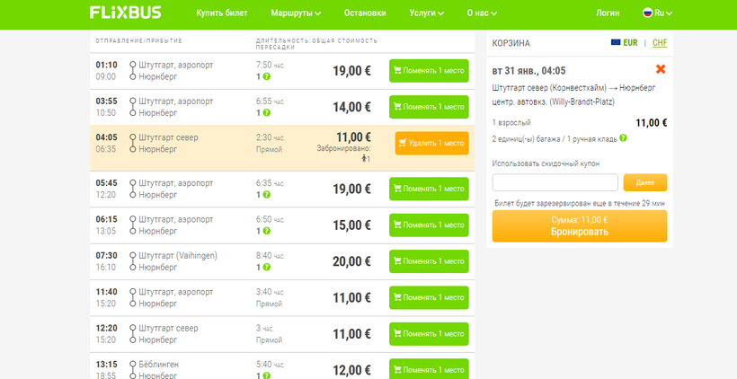 Самый простой способ купить билет – это зайти на сайт FlixBus и оформить покупку на нем. Портал русскоязычный, поэтому никаких проблем не возникнет совсем.