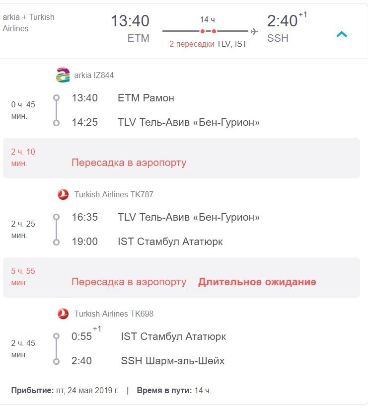 Теперь перейду к самому перелету. До Шарм-эль-Шейха вам придется добираться с двумя пересадками. Проще всего их сделать в Тель-Авиве и Стамбуле. На дорогу потратите 14 часов. Перелеты выполняют: Arkia и Turkish Airlines.