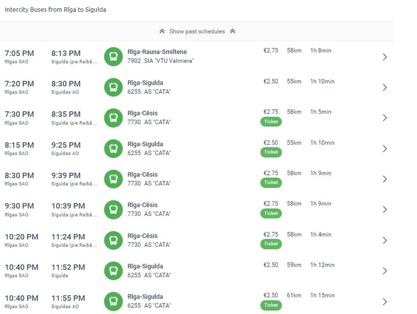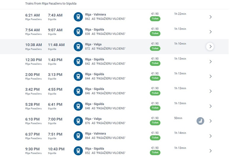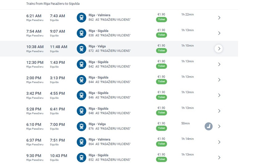 Электричка прибывает на станцию «Рига-Пасажиеру» (Rīgas Centrālā stacija), здесь же и можно пересесть на поезд в Сигулду. Они также ездят часто, советую сделать запас по времени, хотя бы 30 минут, чтобы сориентироваться вокзале и найти нужный поезд.