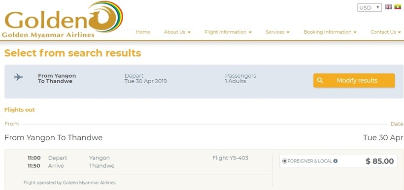 Билет обойдется в среднем в 22500–27000 кьятов (15–18 долларов США).
