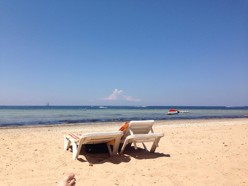 По приезде у меня сложился удобный распорядок дня: утро я проводила на море, самые жаркие дневные часы в номере, вечер – на прогулке по городу. На пляж лучше приходить пораньше, часам к 11 начинали подтягиваться выспавшиеся туристы, у берега сновали скутера и «бананы», активизировались любители пляжного футбола и волейбола. В общем, становилось суетно. Воздух прогревался до +28, даже под зонтом невыносимо жарко. Море в июне приятной температуры, +23-24 градуса.